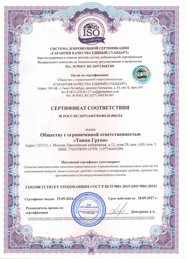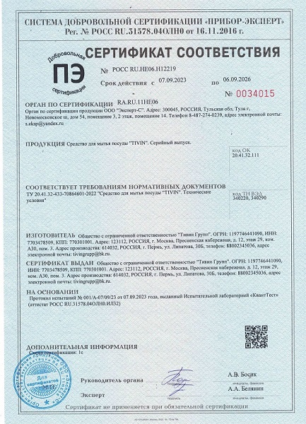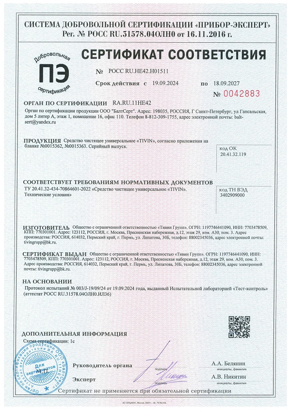 Сертификат соответствия средство чистящее универсальное TIVIN
